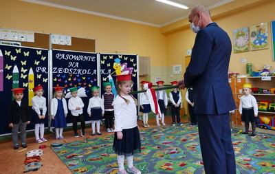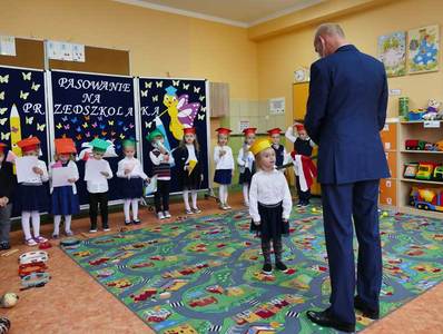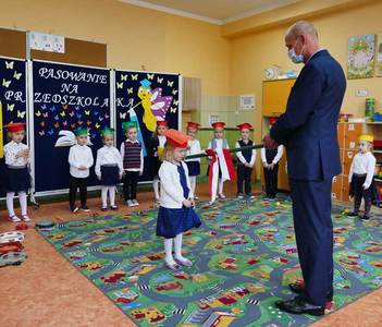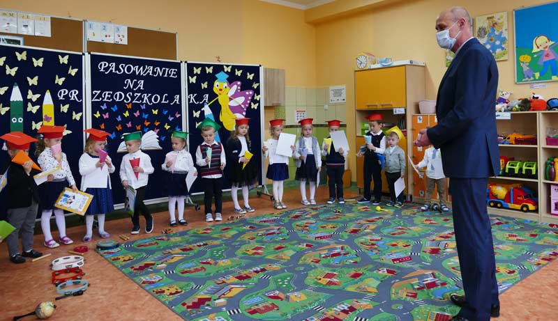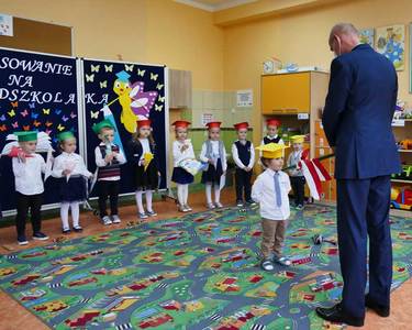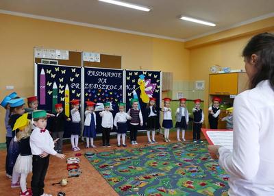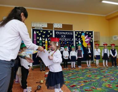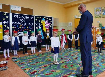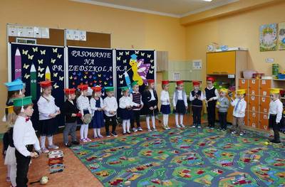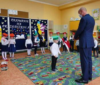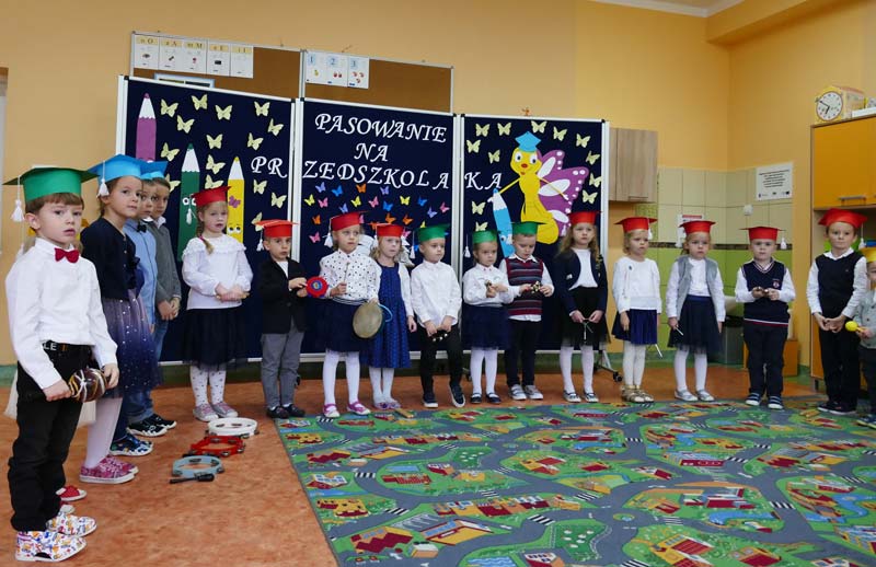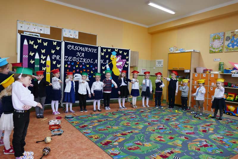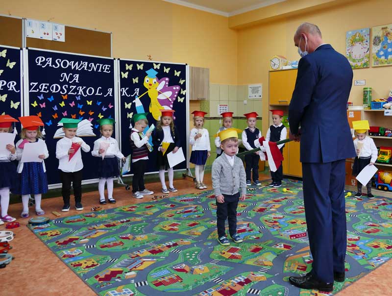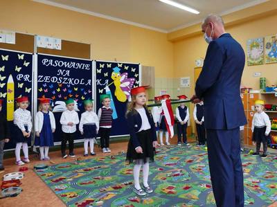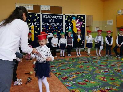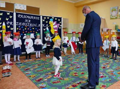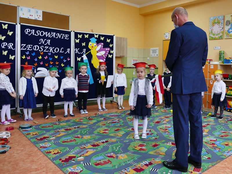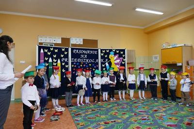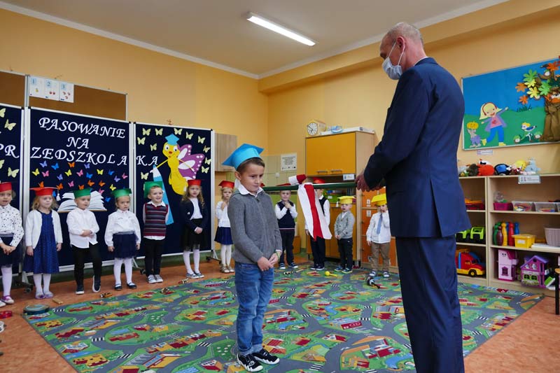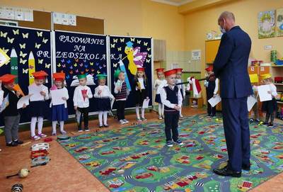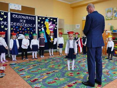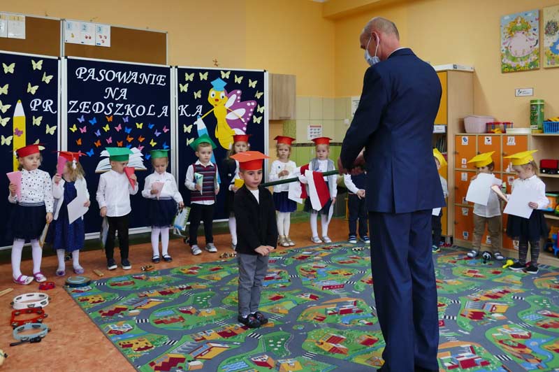 Uroczystość rozpoczęła się od krótkiego przemówienia pana Dyrektora Krzysztofa Morysewicza oraz krótkiej części artystycznej, w której mali artyści z uśmiechem na buziach, w atmosferze radości i przyjaźni zaprezentowali przygotowane piosenki oraz wierszyki. Po występie dzieci złożyły uroczystą przysięgę obiecując zgodnie bawić się w przedszkolu, przychodzić każdego dnia z uśmiechem, słuchać pani i pomagać kolegom, być dobrym i dzielnym przedszkolakiem. Następnie Pan Dyrektor za pomocą czarodziejskiego ołówka dokonał uroczystego aktu pasowania.