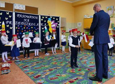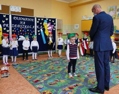 Dnia 9 listopada 2021 roku odbyło się Pasowanie na Przedszkolaka - wyjątkowa uroczystość w życiu naszych najmłodszych podopiecznych. Odświętny strój, a także wystrój sali podkreśliły doniosłość wydarzenia.
