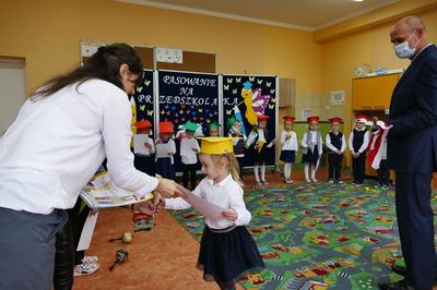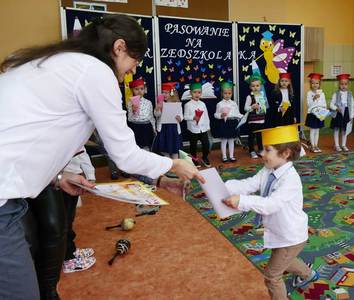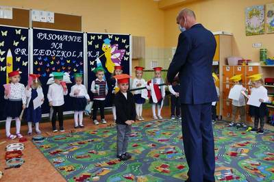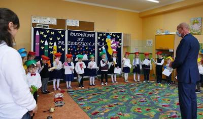 Na pamiątkę tego ważnego wydarzenia każdy przedszkolak otrzymał dyplom pasowania oraz rożek obfitości.