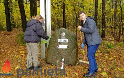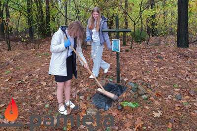 Uczniowie uporządkowali miejsce pamięci i oddali hołd poległym w walce o Zambrów żołnierzom...