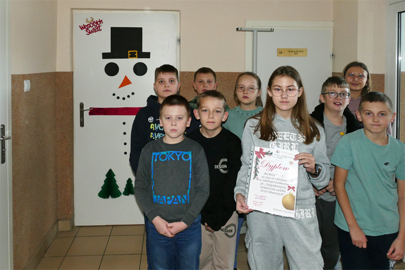 Z okazji zbliżających się Świąt Bożego Narodzenia w naszej szkole po raz pierwszy Samorząd Szkolny ogłosił konkurs na najpiękniejszą dekorację drzwi klasowych. Celem konkursu było rozwijanie zdolności plastycznych, wyobraźni, integracja grup klasowych i stworzenie przyjemniej świątecznej atmosfery w szkole. Co się zdecydowanie udało! Trzeba przyznać, że uczniowie stanęli na wysokości zadania. Dekoracje były bardzo pomysłowe i ładnie się prezentują. W szkole możemy poczuć atmosferę świąt. Zwycięzcą tego konkursu została kl. IV i V.W ramach nagrody otrzymali dyplom, a wszystkie klasy biorące udział w konkursie bon na "dzień bez pytania" w wybranym przez klasę terminie. Zapraszamy do obejrzenia naszych dekoracji.
