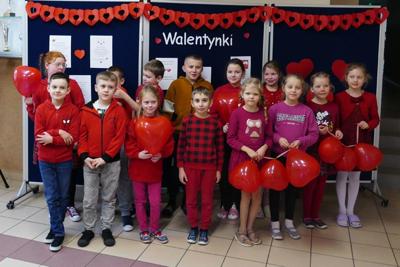 Dnia14 lutego 2025 r. w naszej szkole obchodziliśmy DZIEŃ ŚWIĘTEGO WALENTEGO. Już od samego rana panowała wyjątkowa atmosfera. Zaobserwować można było odświętny wystrój klas, znaczną ilość czerwonych serduszek oraz inne ozdoby kojarzące się z miłością i zakochaniem. Tego dnia dominujący w garderobie uczniów i nauczycieli był oczywiście kolor czerwony. Podobnie jak w latach ubiegłych Samorząd Uczniowski zorganizował pocztę walentynkową. Każdy z uczniów mógł wrzucić do skrzynki swoją walentynkę. W dniu Św. Walentego korespondencja została doręczona do adresatów. Skrzynki poczty walentynkowej bardzo szybko zapełniały się życzeniami i wyrazami sympatii. Szkolne Amorki od poczty walentynkowej miały sporo pracy, aby dostarczyć wszystkie listy, liściki, laurki i karteczki do swoich odbiorców. Podczas otwierania walentynkowych przesyłek – niespodzianek na twarzach pojawiał się uśmiech, a na niektórych nawet rumieniec. Nie zabrakło wyrazów sympatii pod adresem dyrekcji szkoły, nauczycieli i wychowawców. Tegoroczne Walentynki przyniosły społeczności szkolnej wiele radości. Dzień ten ma przypominać nam o tym, co jest w życiu najważniejsze – o miłości i życzliwości. Świętowanie walentynek ma już wielu zwolenników pośród nas, bo uczy okazywania uczuć, a tym samym niesie radość i zadowolenie.