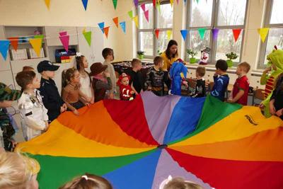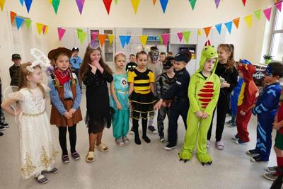 Karnawał zgodnie z tradycją to czas zabaw, balów maskowych, radości i wspólnej rozrywki. Tegoroczny bal przebierańców w naszej szkole odbył się 27 lutego. Wzbudził u przedszkolaków oraz uczniów klas I-III wiele radości. Dzieci przebrane były za bohaterów znanych bajek i filmów, można było zobaczyć: wróżki, księżniczki, kotki, rycerzy, kowbojów, policjantów, strażaków, żołnierzy, Batmana, Harrego Pottera… nie sposób zliczyć i wymienić tych wszystkich postaci. Gdy tylko zabrzmiały pierwsze znane hity muzyczne, zaczęły się pląsy, każdy ruszał się jak umiał najlepiej. Były tańce w kółeczkach, w parach i pociągi. Wszyscy bawili się wesoło, a uśmiech nie znikał z twarzy, mimo chwilowego zmęczenia. Bal kostiumowy, jak zawsze dostarczył najmłodszym dzieciom mnóstwo radości i niezapomnianych wzruszeń. Była to również kolejna, świetna okazja do integracji społeczności szkolnej i zespołu klasowego. Dziękujemy dzieciom i rodzicom za zaangażowanie w przygotowanie pięknych karnawałowych strojów. Kolejny bal karnawałowy już za rok!