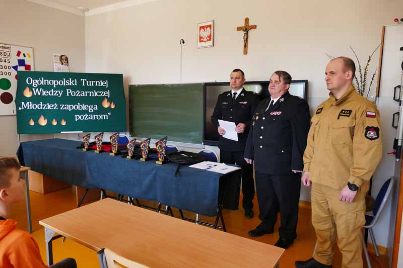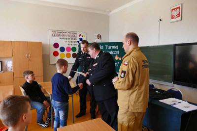 Na zakończenie zmagań w Turnieju Wiedzy Pożarniczej wręczono wszystkim uczestnikom konkursu pamiątkowe dyplomy i nagrody rzeczowe. Najlepsi otrzymali pamiątkowe statuetki.