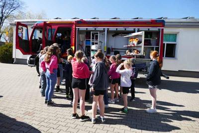 W oczekiwaniu na ogłoszenie wyników wszyscy uczniowie szkoły oraz uczestnicy konkursu mieli możliwość obejrzenia pokazu możliwości samochodu bojowego Ochotniczej Straży Pożarnej w Wiśniewie.