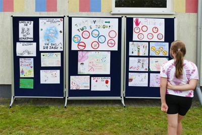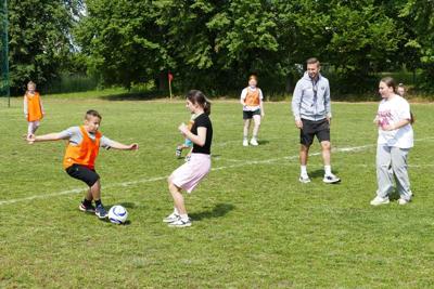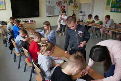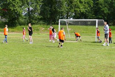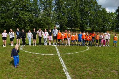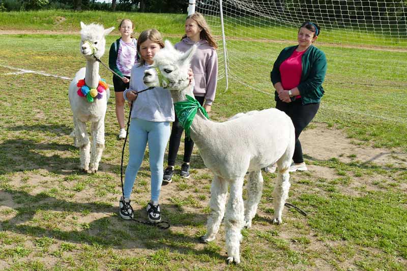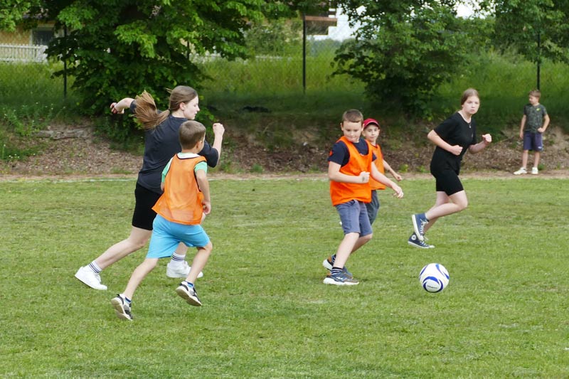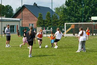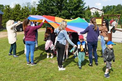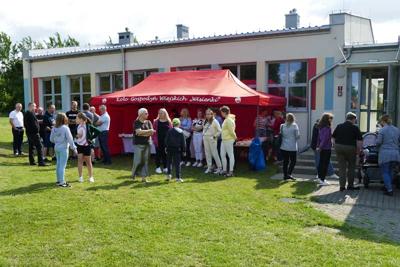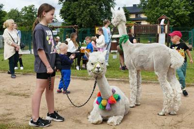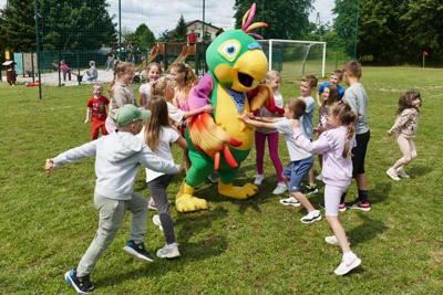 W dniu 10 czerwca w naszej szkole odbył się Festyn Rodzinny połączony z obchodami Dnia Dziecka. Hasłem festynu było „Wybieram zdrowie. Żyję aktywnie, bez uzależnień”. Był to dzień pełen atrakcji, uśmiechów i wspólnej zabawy. To doskonała okazja do integracji całej społeczności szkolnej: uczniów, rodziców i nauczycieli, którzy mogą wspólnie świętować i radować się swoim towarzystwem. Dużym zainteresowaniem cieszyło się mobilne planetarium, czyli Kosmiczne Seanse, podczas których można było zobaczyć Ziemię z kosmosu, poznać planety Układu Słonecznego itp. Odbywały się też integracyjne zabawy animacyjne z chustą Klanza dla najmłodszych, zabawy sportowe, konkurencje rodzinne - mecz piłki nożnej: Uczniowie kontra Rodzice, Chłopcy – Dziewczęta. Mecze sędziował Pan Przemysław Jastrzębski zawodnik Olimpii Zambrów, trener. On też poprowadził zajęcia w kl. I-III w ramach programu „Mały Mistrz”, na których dzieci poznały Jego karierę piłkarską, oglądały puchary, medale. Odbył się też pokaz tańca oraz zabawy animacyjne, maskotka gigant. W tym dniu podsumowano też szkolną kampanię: Stop Uzależnieniom - zajęcia z funkcjonariuszami zambrowskiej policji (szkolenie profilaktyczne nt. uzależnień, prezentacja sprzętu używanego w codziennej służbie, radiowozy, umundurowanie). Można było też obejrzeć plastyczne prace uczniowskie nt. „Stop uzależnieniom! Wybieram zdrowie” wykonane pod kierunkiem Pani Katarzyny Nity - Murawskiej. Klasy I-III wzięły udział w zajęciach warsztatowych z Panią Anną Turowską – animatorką z Gminnego Centrum Kultury Gminy Zambrów. Dzieci pod okiem instruktorki wykonały wzory techniką String Art, która polega na tworzeniu obrazów poprzez oplatanie kolorowych nici wokół gwoździ wbitych w drewnianą tablicę według określonego wzoru. Tego dnia najmłodsi z entuzjazmem robili też bańki mydlane, korzystali z malowania twarzy i tatuaży. Dużym zainteresowaniem cieszyła się szkolna mini „Foto budka”, gdzie można było zrobić rodzinne zdjęcie. Sporą atrakcją okazały się także alpaki – ich obecność wzbudziła ogromne zainteresowanie nie tylko wśród najmłodszych. Możliwość pogłaskania tych sympatycznych zwierząt, zrobienia pamiątkowego zdjęcia czy po prostu spędzenia chwili w ich towarzystwie dostarczyła uczestnikom wielu niezapomnianych wrażeń. Serdecznie dziękujemy Kołu Gospodyń Wiejskich „Wisienki”, Radzie Rodziców i wszystkim naszym Mamom za pyszny poczęstunek! Wasze zaangażowanie i gościnność są nieocenione. Dziękujemy za wspaniałą atmosferę i miłe chwile spędzone razem. Wspaniała uroczystość mogła odbyć się dzięki zaangażowaniu rodziców, uczniów i nauczycieli. Jeszcze raz dziękujemy serdecznie wszystkim, którzy włączyli się w organizację imprezy. Wierzymy, że za rok podobne wydarzenie w naszej szkole będzie równie udane.