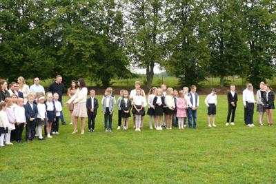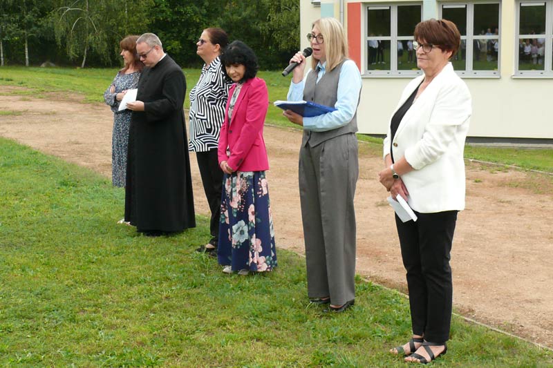 Uroczystość przebiegła w radosnej atmosferze, a szkolne boisko wypełniło się uśmiechami i rozmowami po wakacyjnej przerwie.