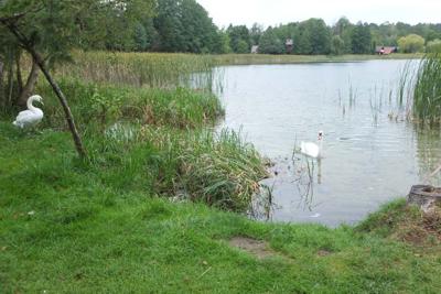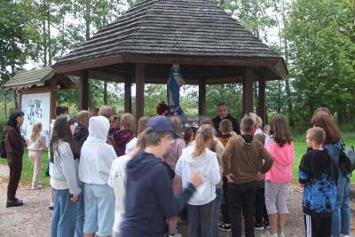 Następnie zatrzymaliśmy się przy sanktuarium w Studzienicznej, gdzie obejrzeliśmy kaplicę położoną na wyspie i pomnik Jana Pawła II.