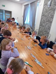 W dniu 22 września ramach zapoznawania z różnymi zawodami dzieci z oddziału przedszkolnego i klas I-III udały się na wycieczkę do Zambrowa. Najpierw pojechały do Biblioteki i Centrum Kultury Gminy Zambrów w Woli Zambrowskiej. Tam odbyły się zajęcia biblioteczne, podczas których dzieci dowiedziały się skąd bierze się książka. Zwiedziły bibliotekę dla dzieci, poznały część multimedialną oraz kącik zabaw z grami planszowymi. Wykonały także pracę plastyczną - projekt okładki wymarzonej książki. Następnie uczestniczyły w warsztatach kreatywnych z p. Anną Turowską. Poznały różne techniki przenoszenia druku na drewno. Podczas warsztatów dzieci własnoręcznie wykonały kolorowe magnesy, które zabrały ze sobą na pamiątkę. Dzieci miały okazję zapoznać się z pracą bibliotekarza i plastyka. Następnym punktem wycieczki były warsztaty kulinarne „Mały Kucharz ” w pizzerii Da Grasso w Zambrowie. Dzieci miały okazję zapoznać się z pracą kucharza i kelnerki. Po zapoznaniu się z techniką wykonania pizzy, wcieliły się w rolę kucharzy i przyrządziły swoje własne pizze. Każdy z uczestników otrzymał specjalną czapkę kucharską oraz fartuch. Na stanowiskach pracy przygotowano wcześniej kulki ciasta, wałek, podkładki oraz przeróżne składniki. Każdy mógł skomponować swoją, wyjątkową pizzę. Wyglądały cudownie, a jeszcze lepiej smakowały! Na zakończenie warsztatów dzieci otrzymały pamiątkowe dyplomy Małego Kucharza. Na koniec korzystając z pięknej pogody astronomicznej jesieni dzieci mogły pobawić się na placu zabaw. Na tej wycieczce uczniowie klas I-III oraz przedszkolaki miały okazję zapoznać się z różnorodnością zawodów na rynku pracy oraz rozwijać zainteresowania. Warsztaty edukacyjne i kulinarne były dla dzieci także świetną formą wypoczynku i relaksu oraz doskonałym czasem na integrację oraz uczenia się pracy w zespole.