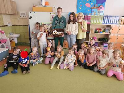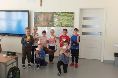 Na szkolnych korytarzach i w klasach zapachniało sadem, a każdy mógł poczęstować się smacznym jabłkiem ufundowanym przez hurtownię Artykułów Spożywczych w Zambrowie Pana Krzysztofa Pęskiego - za co przedszkolaki