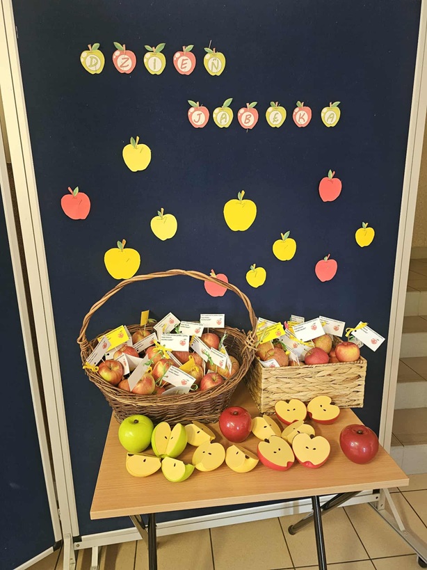W dniu 26 września Samorząd Uczniowski zorganizował "Dzień Jabłka" - wydarzenie, którego celem było zachęcenie dzieci już od najmłodszych lat do spożywania owoców, a w szczególności jabłek i to pod różnymi postaciami,