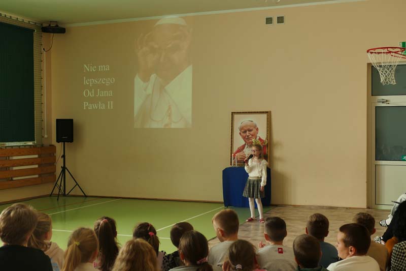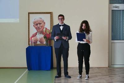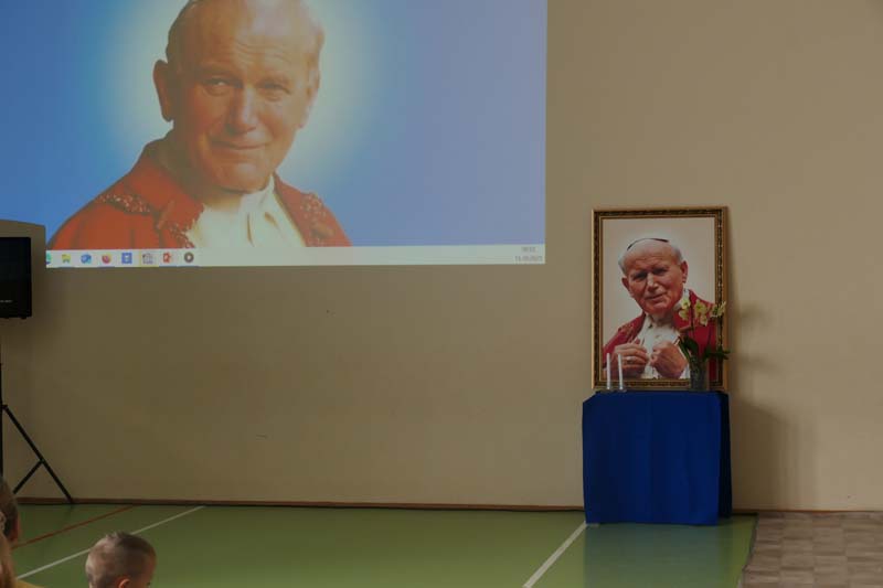 Co roku w październiku obchodzimy w Polsce Dzień Papieski, który przypomina nam o wyborze Karola Wojtyły na papieża. Nasza społeczność szkolna obchodziła ten dzień 15 października. Z tej okazji spotkaliśmy się na sali, aby razem z naszą młodzieżą i młodszymi uczniami stać się prawdziwymi przewodnikami po życiu i nauczaniu św. Jana Pawła II. Dziękujemy naszym "papieskim ambasadorom" za przypomnienie nam inspirujących słów naszego rodaka: „Bóg jest pierwszym źródłem radości i nadziei człowieka.”W obchodach Dnia Papieskiego nie zabrakło ulubionej pieśni Jana Pawła II pt. “Barka”.