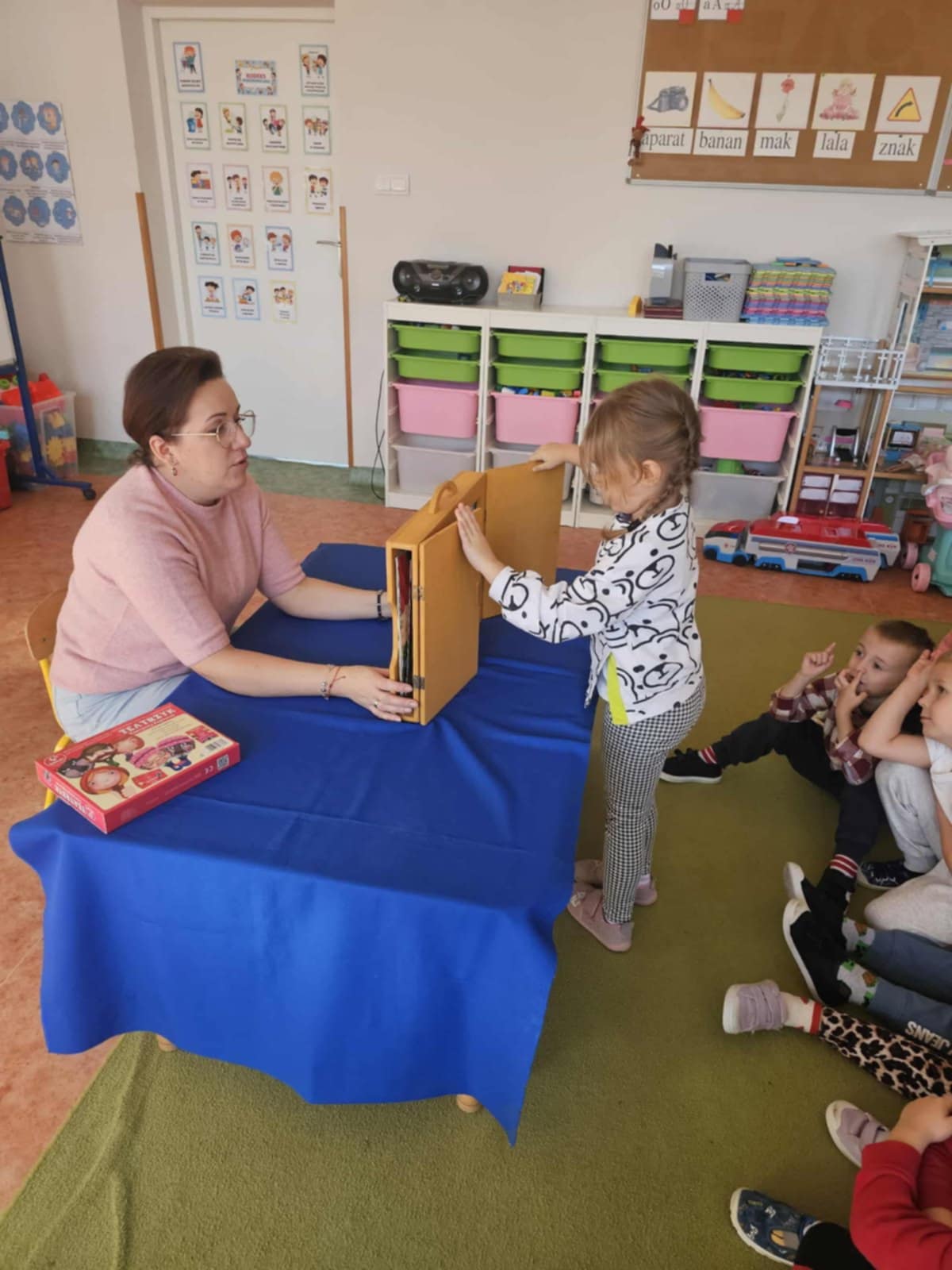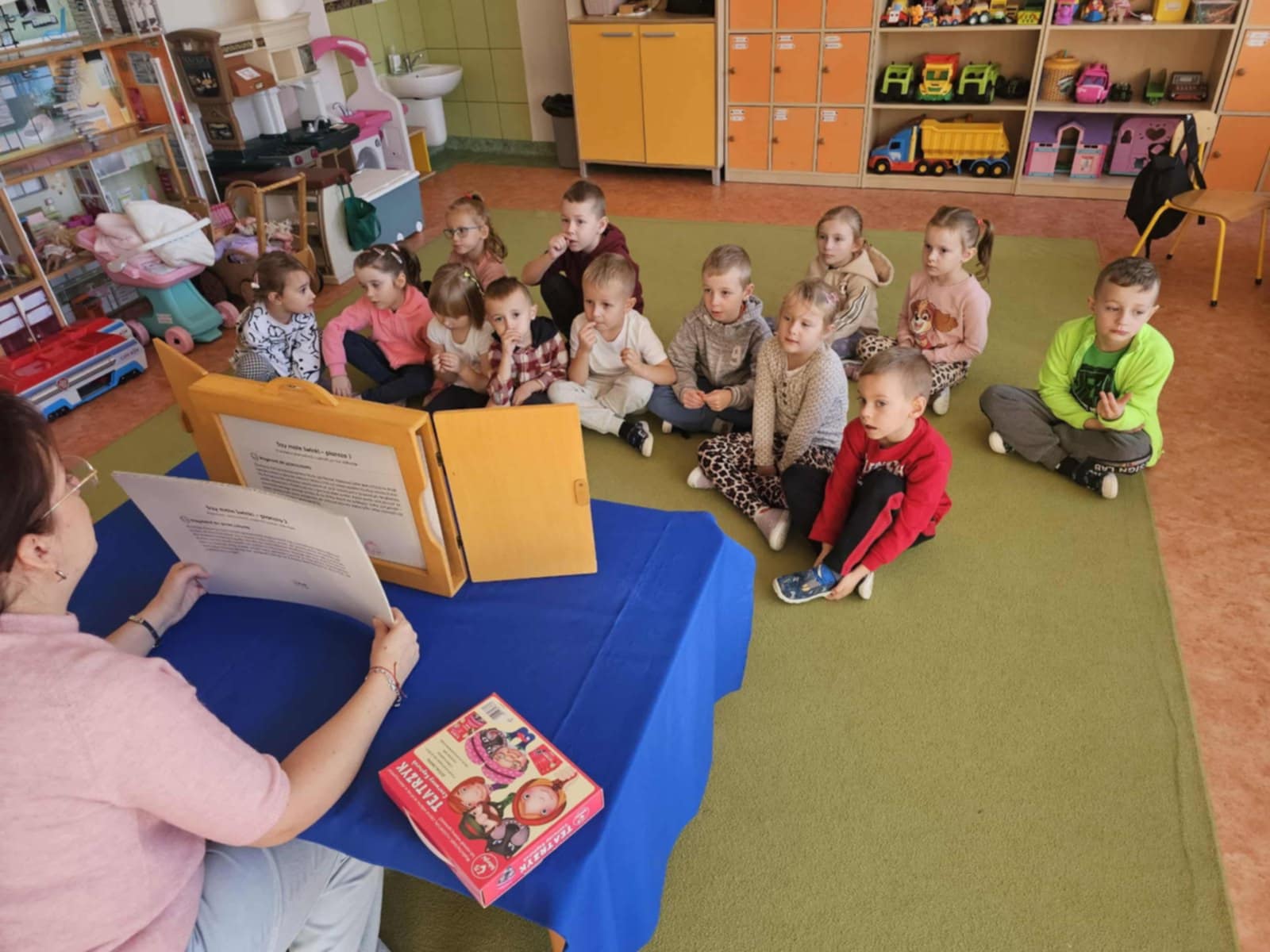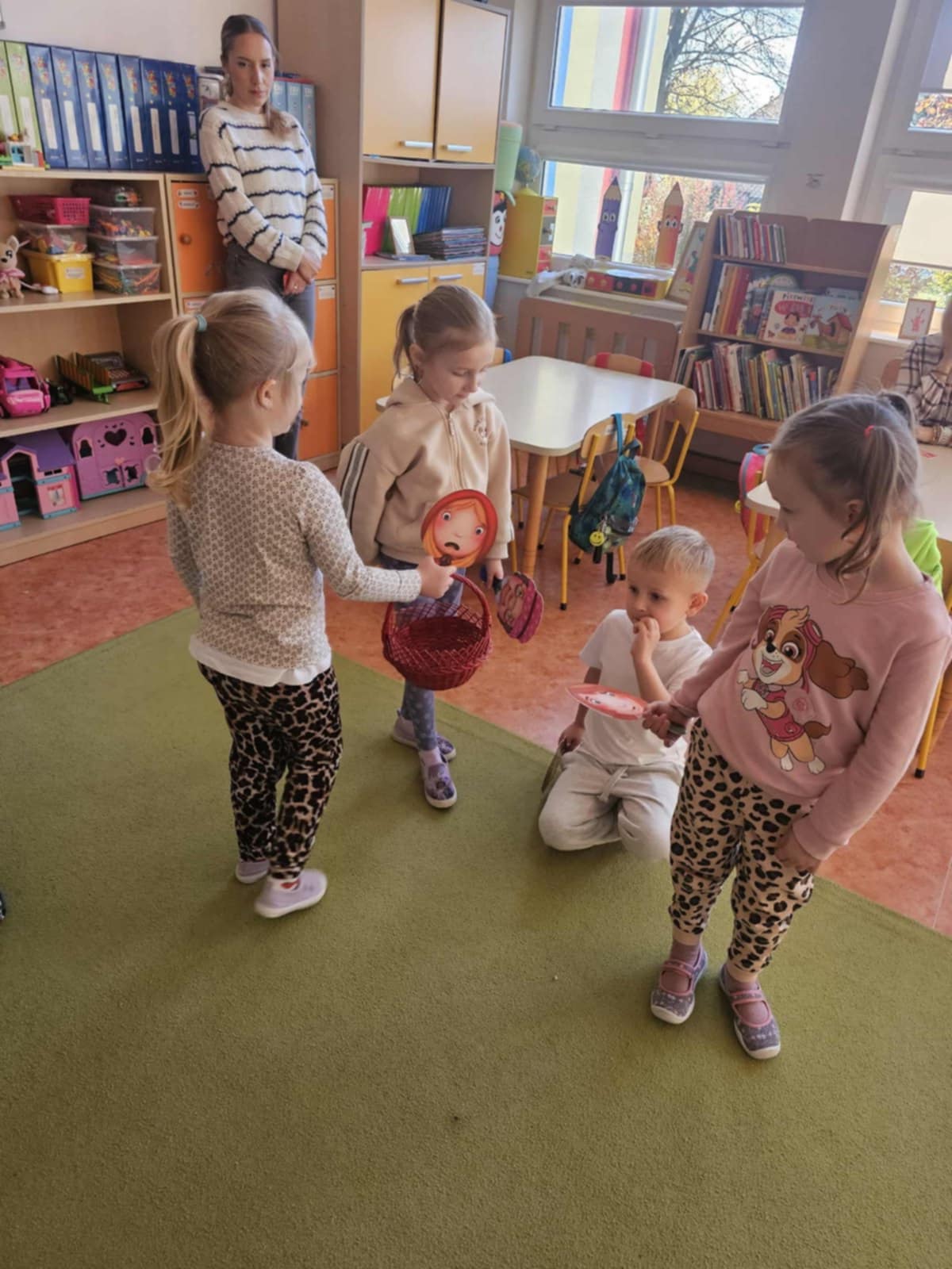 Po wysłuchaniu bajki zostały zaproszone na przedstawienie o „Czerwonym Kapturku”, gdzie w bohaterów bajki wcieliły się ich koleżanki i koledzy z grupy.