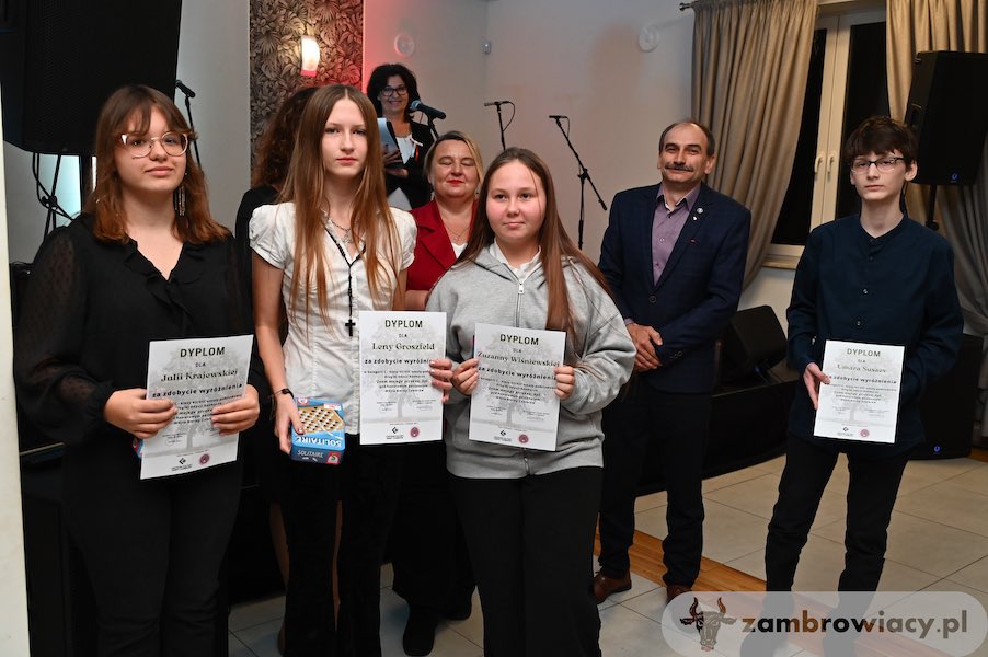 W dniu 11 listopada w 2025r. w Centrum Kultury Gminy Zambrów odbyła się wieczornica patriotyczna z okazji 107 rocznicy odzyskania niepodległości przez Polskę. W czasie uroczystości zostały przedstawione wyniki II edycji konkursu pt. ,,Znam mojego przodka, był…”. Konkurs zorganizowany został przez Centrum Kultury Gminy Zambrów oraz Związek Szlachty Polskiej Oddział w Zambrowie. Wśród 52 prac konkursowych zgłoszonych w konkursie było 9 prac autorstwa uczniów naszej szkoły, 6 prac wykonanych przez uczniów kl. II i III oraz 3 prace uczniów klas starszych. Prace oceniane były w czterech kategoriach wiekowych.
