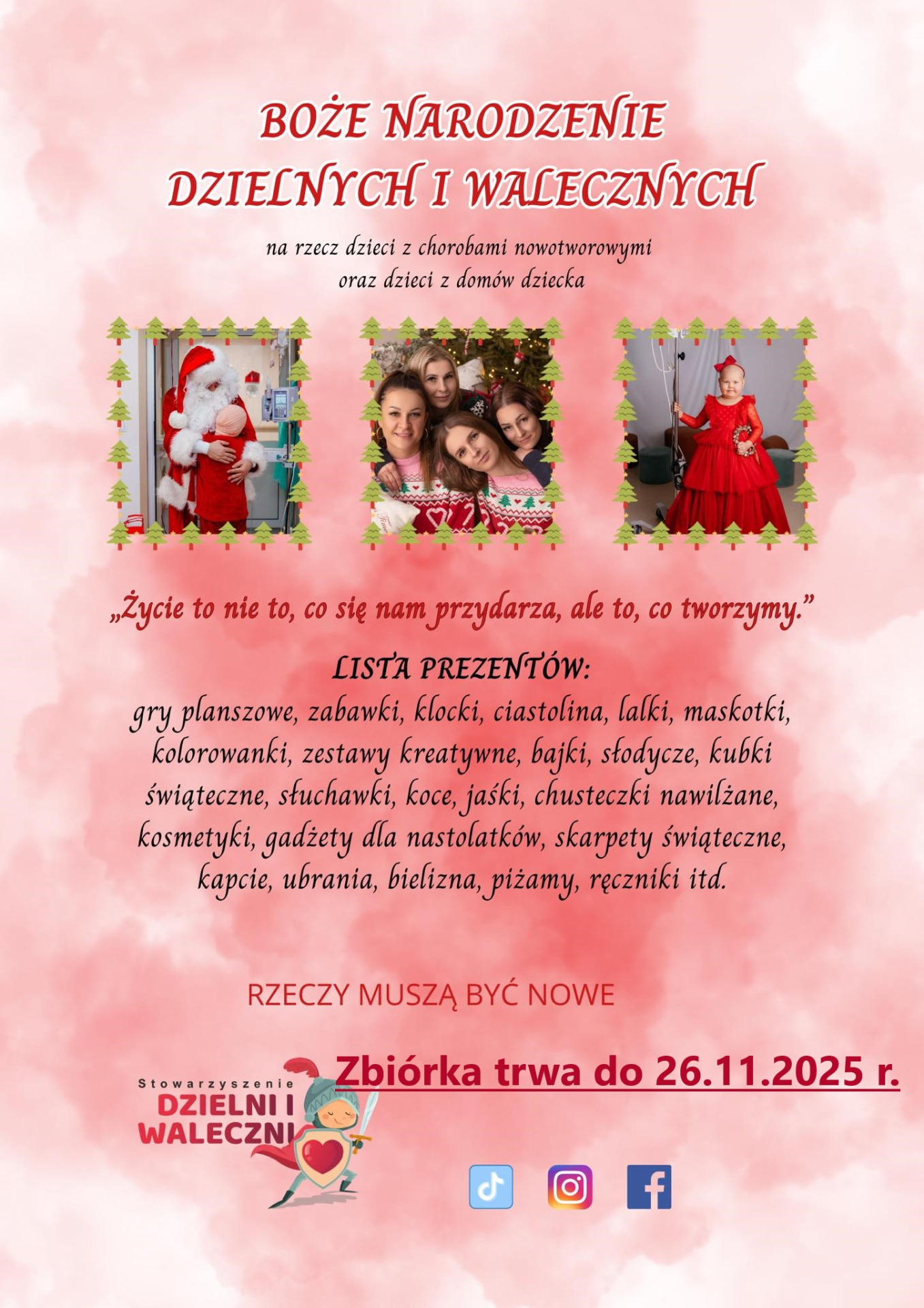 Nasza szkoła po raz kolejny włącza się do akcji zorganizowanej przez Stowarzyszenie Dzielni i Waleczni – Boże Narodzenie Dzielnych i Walecznych-zbiórka na rzecz dzieci z chorobami nowotworowymi oraz dzieci z domów dziecka.
