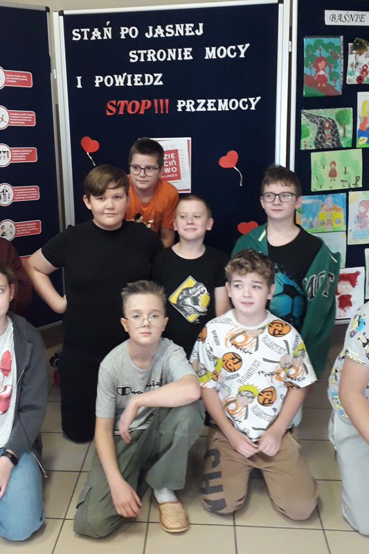 W klasach młodszych zajęcia na temat: ”Komunikacja bez przemocy” przeprowadziła szkolna psycholog pani Maria Kaczerska, zaś w klasach IV-VIII „ Przemoc rówieśnicza-nie bądź obojętny” nauczyciel wspomagający Elżbieta Gacka- Modzelewska.