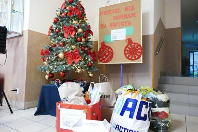 W dniach 1-12 grudnia w naszej szkole odbyła się akcja „Świąteczna paczka”. Zbierane były artykuły spożywcze, higieniczne oraz środki czystości. W darach znalazły się także zabawki oraz przybory plastyczne. Dzięki ogromnemu zaangażowaniu całej społeczności szkolnej udało się zgromadzić wiele niezbędnych produktów, które zostały już przekazane rodzinie z obwodu naszej szkoły. Z całego serca dziękujemy wszystkim ofiarodawcom, uczniom, rodzicom, nauczycielom oraz pracownikom szkoły za okazane wsparcie, zaangażowanie, życzliwość i otwarte serca. Składamy także podziękowania wolontariuszom, którzy pomagali segregować i pakować dary. To dzięki Wam magia dobra stała się rzeczywistością. Państwa pomoc i wrażliwość na potrzeby innych są najlepszym dowodem na to, jak wiele można osiągnąć, działając wspólnie.
